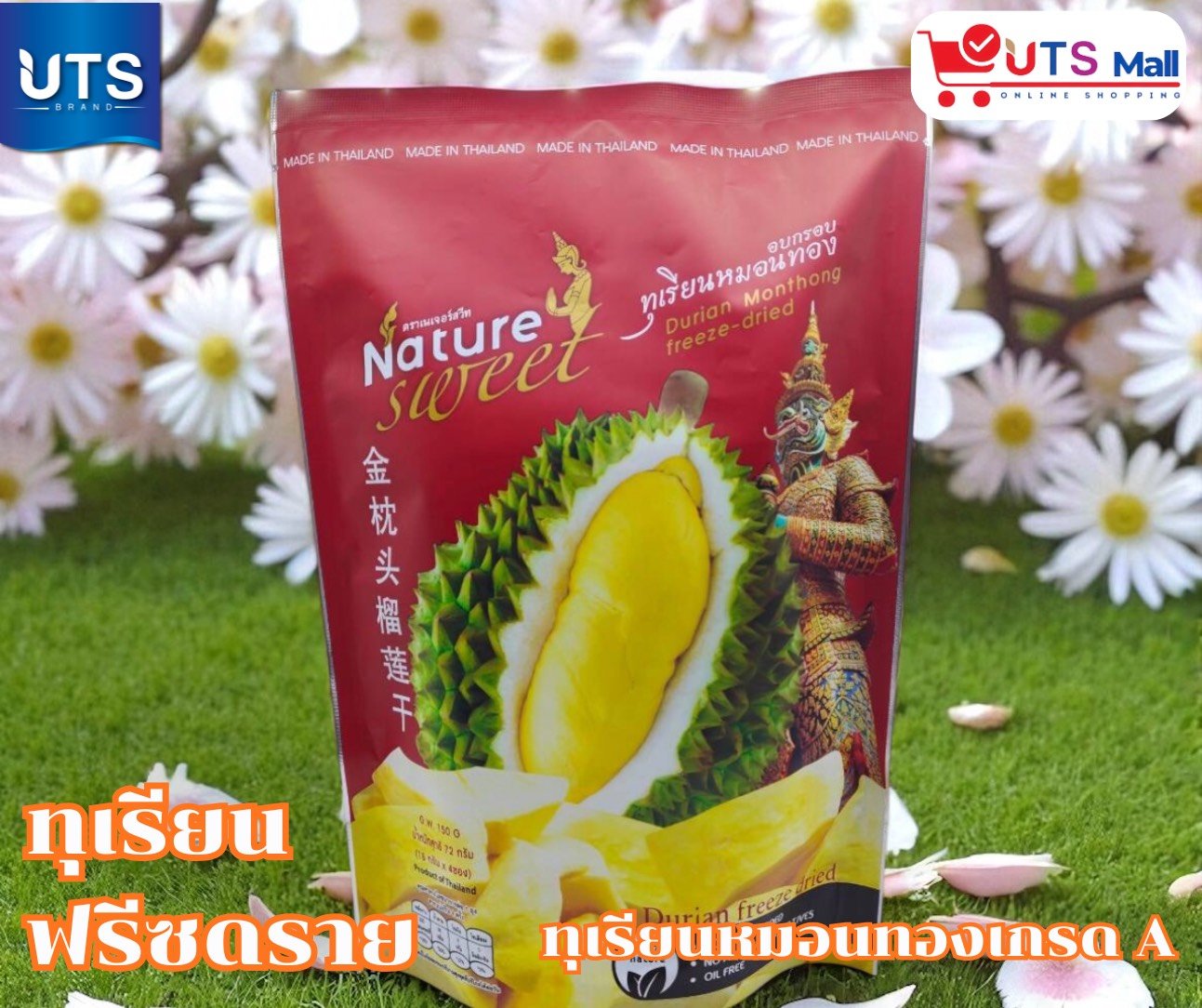 1 ห่อ บรรจุ 4 ซอง ซองละ 12 กรัม ทุเรียนฟรีซดราย เนเจอร์สวิท ใช้เนื้อทุเรียนหมอนทองเกรดเอ 100% ยูทีเอสแบรนด์คัดสรรคุณภาพความอร่อย มาตรฐานส่งออก รสชาติหอมหวาน กรอบ ด้วยกระบวนการฟรีซดรายที่ทันสมัยไม่เสียคุณค่าทางอาหาร