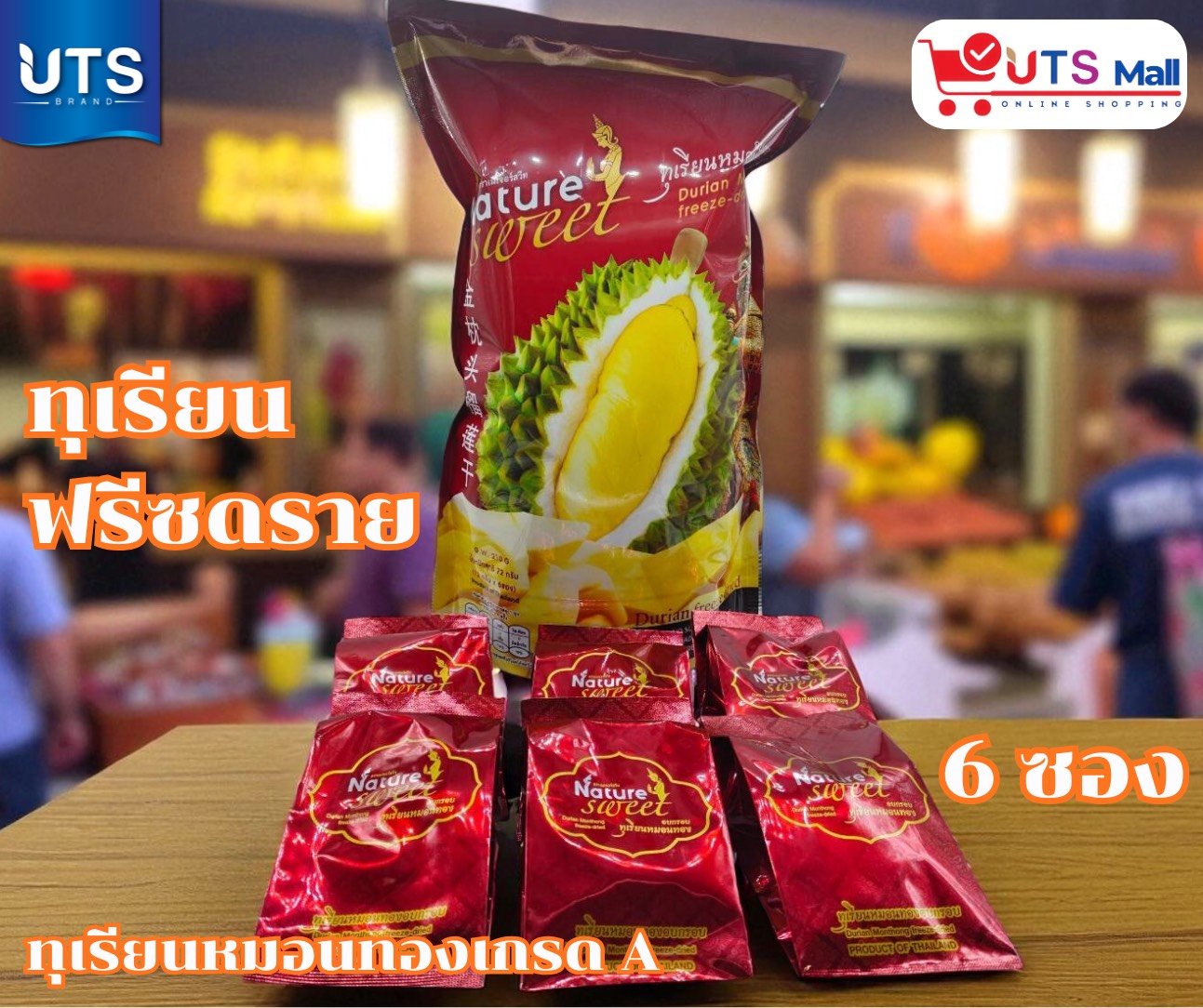 1 ห่อ บรรจุ 6 ซอง ซองละ 12 กรัม ทุเรียนฟรีซดราย เนเจอร์สวิท ใช้เนื้อทุเรียนหมอนทองเกรดเอ 100% ยูทีเอสแบรนด์คัดสรรคุณภาพความอร่อย มาตรฐานส่งออก รสชาติหอมหวาน กรอบ ด้วยกระบวนการฟรีซดรายที่ทันสมัยไม่เสียคุณค่าทางอาหาร